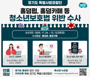 경기도 특사경, 홀덤 펍·카페 청소년 출입·고용 불법행위 집중 수사