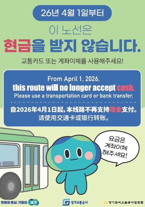 현금 사용자의 혼란을 최소화하기 위해 3월 초부터 해당 노선의 차량과 정류소에 홍보 포스터와 안내문을 붙이고 경기버스정보어플 등을 통해 적극 알릴 계획이다.