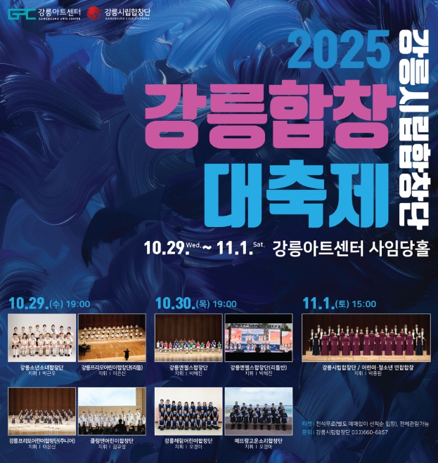 [코리아 이슈저널=최제구 기자] 강릉시립합창단과 관내 어린이·청소년 합창단이 함께하는 '2025 강릉합창대축제'가 오는 10월 29일부터 11월 1일까지 강릉아트센터 사임당홀에서 개최된다.