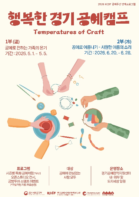 [코리아 이슈저널=홍춘표 기자] 한국도자재단이 오는 5월 1일부터 경기공예창작지원센터(여주) 일원에서 체험·전시·이벤트를 결합한 참여형 프로그램 ‘2026 행복한 경기 공예 캠프’를 개최한다.