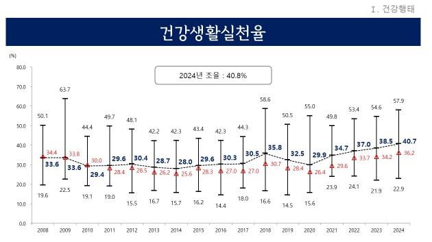 | ▲ 건강생활실천율 변화추이(2008-2024) |