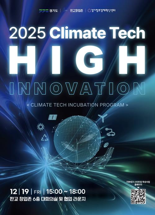 [코리아 이슈저널=홍춘표 기자] 2026년 본격 시행되는 기후규제를 앞두고 경기도와 경기창조경제혁신센터가 기후테크 기업과 함께 오는 19일 판교제2테크노밸리기업지원허브에서 간담회·세미나·성과공유회(High innovation)를 함께 개최한다.