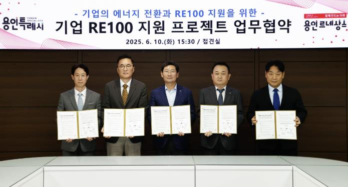 [코리아 이슈저널=홍춘표 기자] 용인특례시는 지역내 기업의 에너지전환과 ‘RE100(Renewable Electricity 100)’ 이행 지원을 위한 업무협약을 체결했다고 11일 밝혔다.
