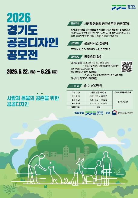 [코리아 이슈저널=홍춘표 기자] 경기도가 ‘사람과 동물의 공존을 위한 공공디자인’이란 주제로 제20회 ‘2026년 경기도 공공디자인 공모전’을 6월 22일부터 26일까지 개최한다.
