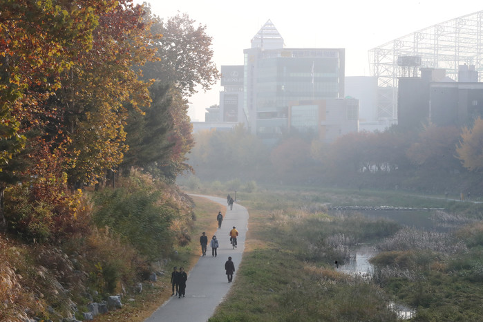 ▲ 대전 유성구 유성천 일대가 미세먼지와 아침 안개로 뿌옇게 보인다. [연합뉴스 자료사진]