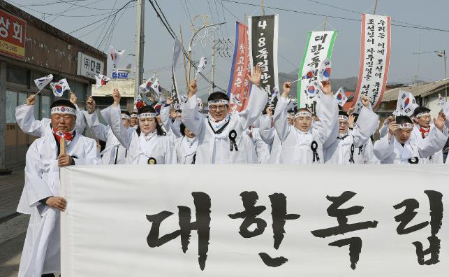 ▲ 8일 해보면 3·1 만세탑 광장에서 진행된 4.8 만세운동 추모식 및 재현행사 모습 |