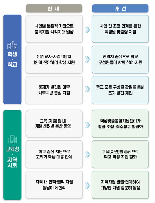 | ▲ 학생맞춤통합지원에 따라 달라지는 점 |