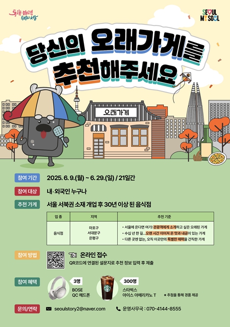서울 서북권(마포구‧서대문구‧은평구) 내 30년 이상 된 음식점 대상 ‘오래가게’ 추천 공모