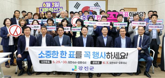 [코리아 이슈저널=김종오 기자] 강진군이 오는 6월 3일에 실시되는 제21대 대통령선거를 앞두고 군민들의 적극적인 투표 참여를 당부했다.