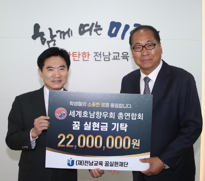 [코리아 이슈저널=김종오 기자] 전남교육 꿈실현재단은 지난 1일 세계호남향우회 총연합회가 ‘전남 의(義) 실천 꿈 실현금’ 2,200만원을 기탁했다고 밝혔다.