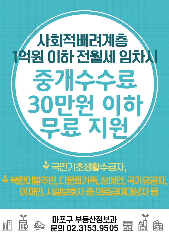 마포구는 2019년부터 무료중개 지원사업을 하고 있으며 지난해까지 102가구에 2천여만원을 지원했다.