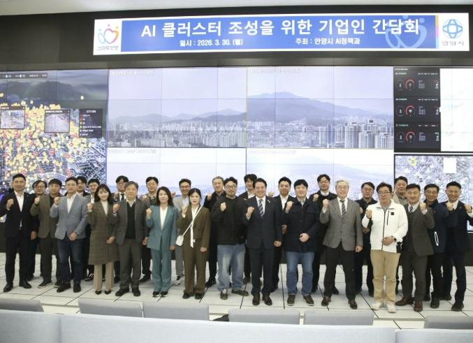안양시(시장 최대호)는 30일 오후 4시 스마트도시통합센터에서 관내 우수 AI 기술 보유 기업 대표 및 임직원 30여 명을 초청해 'AI 클러스터 조성을 위한 기업인 간담회'를 개최했다고 31일 밝혔다.