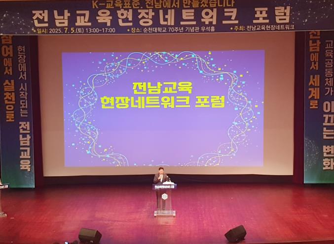 [코리아 이슈저널=홍춘표 기자] 전라남도의회 김정희 교육위원장은 2025년 7월 5일 순천대학교 70주년 기념관 우석홀에서 열린 ‘전남교육 현장네트워크 포럼’에 참석해, 전남교육의 미래와 혁신을 위한 강한 의지를 밝혔다.