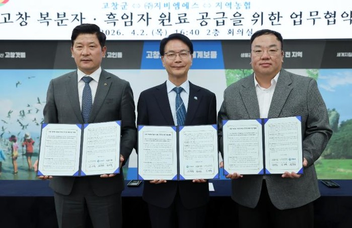 [코리아 이슈저널=김종오 기자] 고창군이 지난 2일 오후 군청2층 회의실에서 고창군·㈜지비엠에스·지역농협 5개소와 ‘고창 복분자·흑임자 원료 공급 및 상생발전 업무협약(MOU)’을 체결했다.