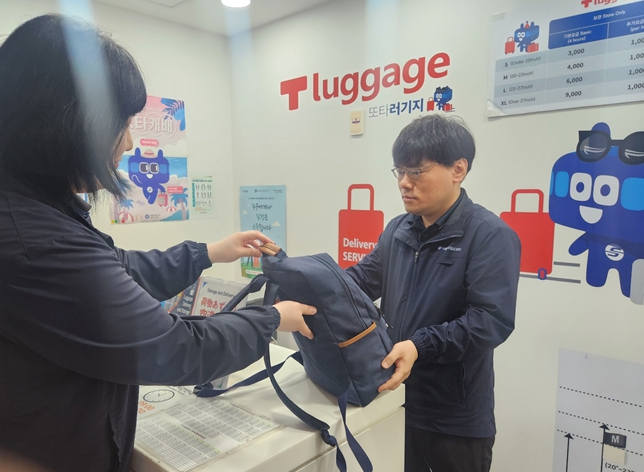 | ▲ 명동역 또타러기지 직원에게 유실물을 전달하는 충무로유실물센터 직원 |