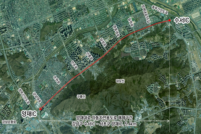 [코리아 이슈저널=최준석 기자] 서울시는 26일 0시를 기점으로 강남구 수서IC부터 서초구 양재IC까지 양재대로 5.4㎞ 구간을 37년 만에 자동차전용도로에서 해제한다고 밝혔다. 시가 지난해부터 추진해 온 규제 철폐의 일환(83호)으로, 이번 조치로 양재대로 전 구간이 일반도로로 운영된다.