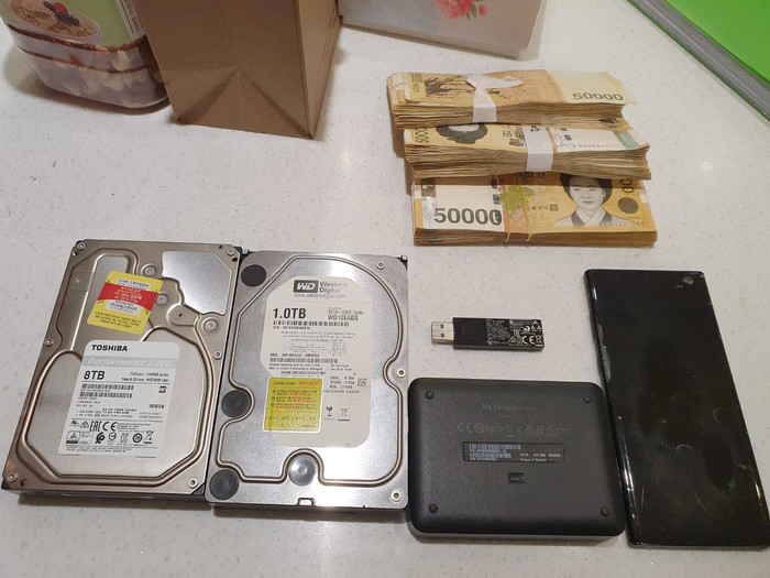 | ▲ 압수한 현금과 하드디스크 [경기북부경찰청 제공. 재판매 및 DB금지] |