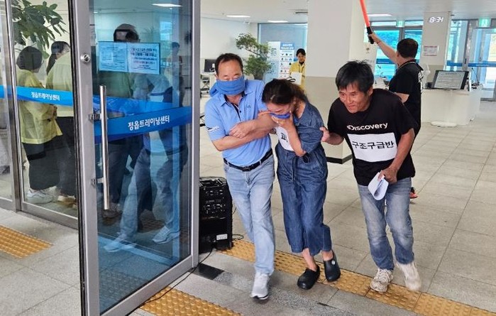 훈련은 ‘중대재해처벌등에 관한 법률’에 따른 대응체계 구축의 일환으로, 사고 위험 요소가 많은 다중이용 사업장을 선정해 화재, 스키드로더 충돌 등 실제 사고 상황을 가정한 실전형 시나리오를 바탕으로 진행됐다.