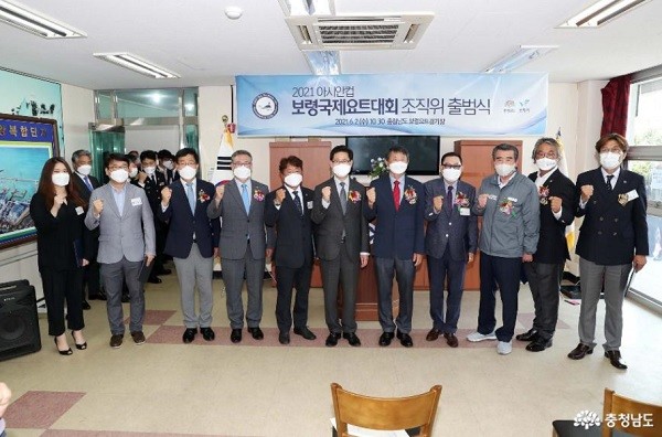 아시안컵 보령국제요트대회 성공 개최를 다짐하는 조직위 출범식은 양승조 지사와 김명선 도의회 의장, 김동일 보령시장, 박기철 대한요트협회장 등이 참석한 가운데 보령요트경기장에서 가졌다.