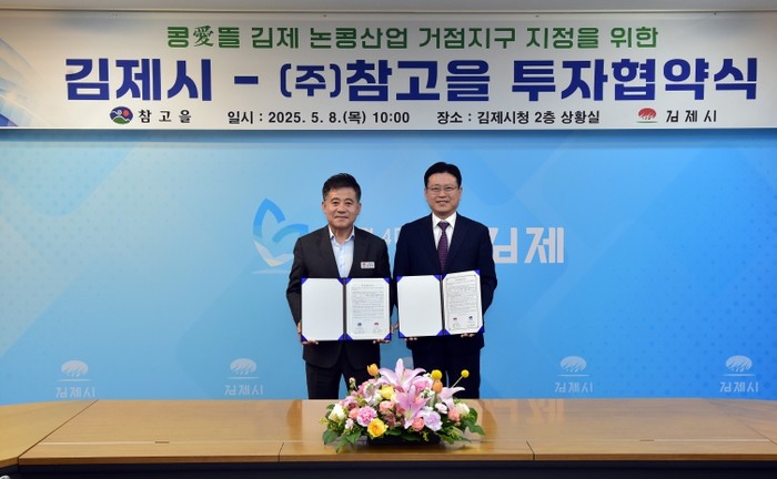 [코리아 이슈저널=김종오 기자] 김제시가 지난 8일 논 콩 생산의 안정화와 농가소득 증대를 위해 ㈜참고을과 투자협약을 체결했다.