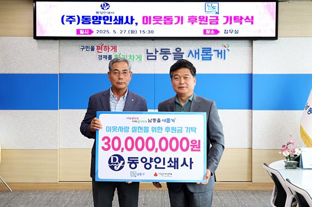[코리아 이슈저널=홍춘표 기자] 인천시 남동구는 주식회사 동양인쇄사로부터 이웃돕기를 위한 성금 3천만 원을 기탁받았다고 29일 전했다.
