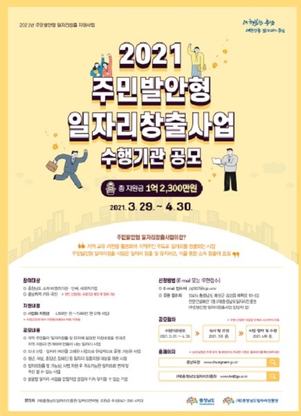충남, ‘주민 발안형 일자리 창출 사업’ 수행기관 공모 접수