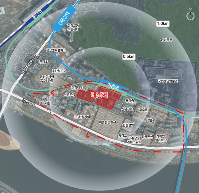대상지는 용산공원과 인접한 지역으로 지하철 4호선 및 경의·중앙선 이촌역 남측에 위치하고 있으며, 준공 후 26년이 경과한 공동주택 리모델링사업 추진을 위해 지구단위계획에 대한 자문 및 경관심의를 받았다.
