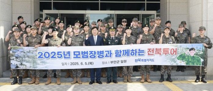 [코리아 이슈저널=김종오 기자] 전북특별자치도는 5일, 도내 군부대에 복무 중인 타지역 출신 모범장병 40명을 대상으로 ‘2025년 상반기 모범장병과 함께하는 전북 투어’를 진행했다고 밝혔다.