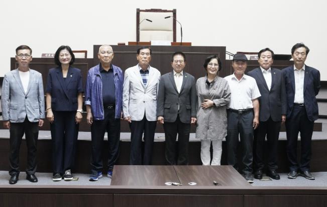 [코리아 이슈저널=홍춘표 기자] 광주시의회 허경행 의장은 7월 1일, 제9대 광주시의회 후반기 개원 1주년을 맞아 의장실에서 전직 의장 최정민(제3대 전반기), 구이모(제3대 후반기), 조억동(제4대 전반기), 이우경(제4대 후반기), 이상택(제5대 후반기), 소미순(제7대 전반기), 임일혁(제8대 후반기), 주임록(제9대 전반기)과 간담회를 개최하고, 광주시의회의 발전 방향과 향후 과제에 대해 뜻깊은 대화를 나눴다.