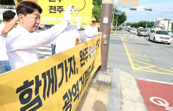 이날 우 시장은 전주시 통장협의회, 새마을회 회원들과 함께 통합을 염원하는 마음을 담아 피켓을 들고 시민들과 직접 소통하며 통합의 필요성을 강조했다.