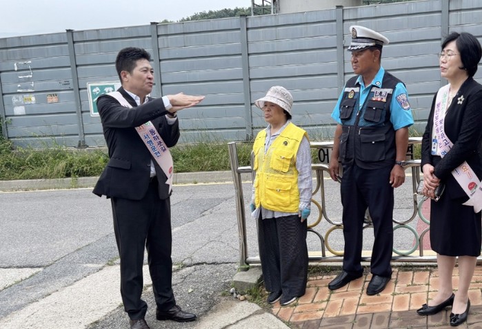 이날 김정헌 구청장은 학교장, 교직원, 학부모들과 함께 등굣길 보행 지도를 진행한 데 이어, 학교 인근의 각종 교통안전 시설물에 대한 현장점검을 벌이며 통학 안전과 관련한 다양한 건의 사항을 청취했다.