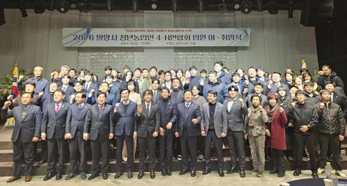 [코리아 이슈저널=김태훈 기자] 경남 밀양시는 지난 22일 호텔 아리나에서 ‘2026 밀양시 청년농업인 4-H연합회 임원 이·취임식’을 가졌다.