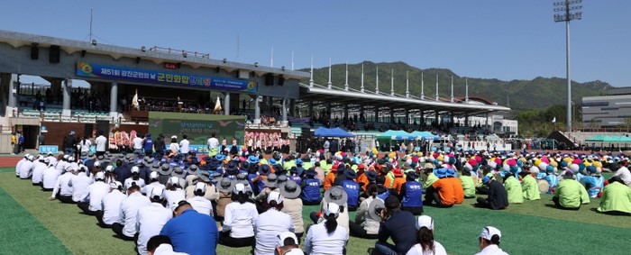 이후 진행되는 읍·면대항 체육행사에서는 윷놀이, 에어봉 달리기, 단체줄넘기, 줄다리기, 씨름, 게이트볼, 축구, 배구 등 총 8개 종목의 경기가 펼쳐진다.