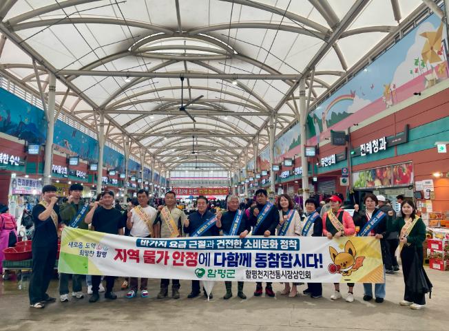 함평군은 23일 “시장 상인회와 소상공인연합회, 군청 관계자 등 30여 명이 전날 함평천지전통시장 일원에서 물가안정 캠페인을 실시했다”고 밝혔다.