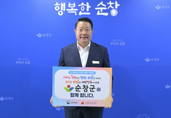 [코리아 이슈저널=김종오 기자] 최영일 순창군수는 23일 인구문제 인식개선 릴레이 캠페인에 동참하며, 저출산과 고령화 문제 해결을 위한 지역사회의 적극적인 참여와 관심을 촉구했다.