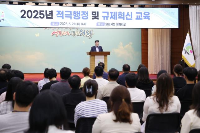 [코리아 이슈저널=홍춘표 기자] 의왕시는 21일 시청 대회의실에서 전 직원을 대상으로 ‘2025년 적극행정 및 규제혁신 역량 강화 직원 교육’을 실시했다.