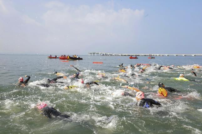 | ▲ 지난해 9월 거북섬에서 열린 제 13회 전국생활체육 장거리 핀수영대회 |