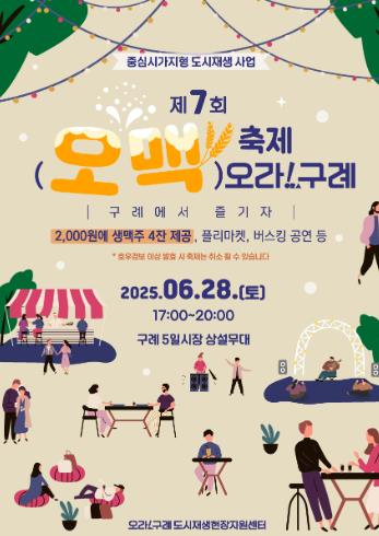이번 제7회 오맥축제는 ‘500cc 맥주 1잔에 500원, 오후 5시에 하는 행사’라는 키워드로 성인 인증 후 맥주 교환권(4잔 2,000원)을 구매하는 방식으로 안전한 음주 문화를 유도한다.