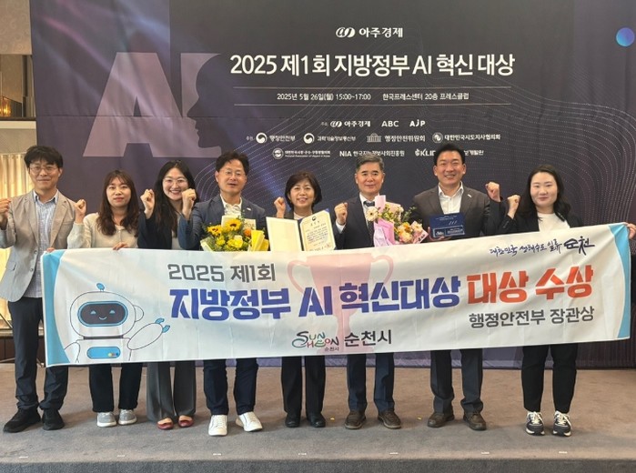 [코리아 이슈저널=김종오 기자] 순천시는 지난 26일 서울 한국프레스센터에서 열린 ‘제1회 지방정부 AI 혁신 대상’에서 기초지자체 부문 대상을 수상하며 행정안전부 장관상을 받았다고 밝혔다.