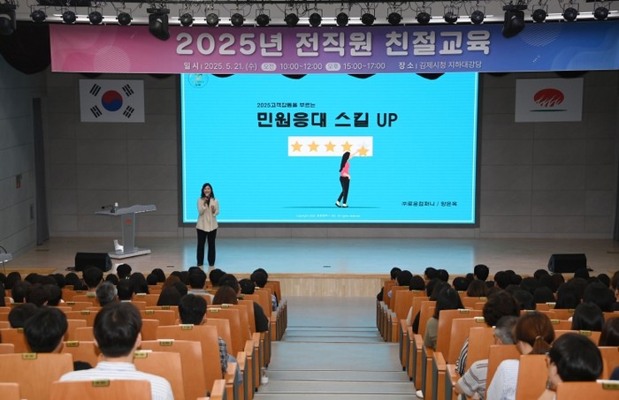 [코리아 이슈저널=김종오 기자] 김제시는 시민에게 다가가는 민원행정을 펼치기 위해 21일 오전과 오후, 두 차례에 걸쳐 전직원을 대상으로 친절교육을 진행했다고 밝혔다.