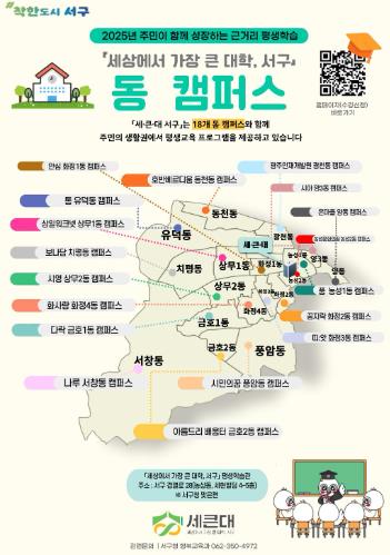 ‘세상에서 가장 큰 대학, 서구(세큰대)’사업의 일환으로 추진된‘동 캠퍼스’는 각 동의 BI(Brand Identity)와 연계한 특화 강좌로 주민들의 호응을 얻고 있다.