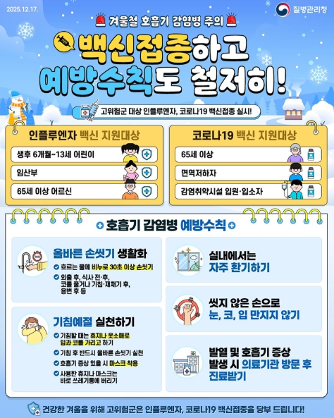 건강한 겨울을 위해 고위험군은 인플루엔자, 코로나19 백신접종을 당부 드립니다!