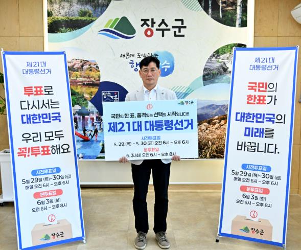 [코리아 이슈저널=김종오 기자] 최훈식 장수군수가 오는 6월 3일 치러지는 제21대 대통령선거를 앞두고 군민들의 소중한 권리 행사 독려를 위해 투표 독려 릴레이 캠페인을 시작했다.