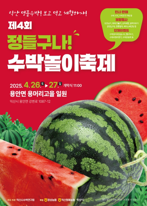 축제는 용안·망성면 농가로 구성된 익산시 수박연구회(회장 윤범열)가 주최·주관한다.