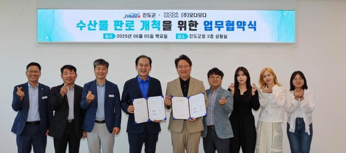 ▲ 진도군, ㈜모다모다와 업무협약 체결로 수산물 우수성 홍보 |