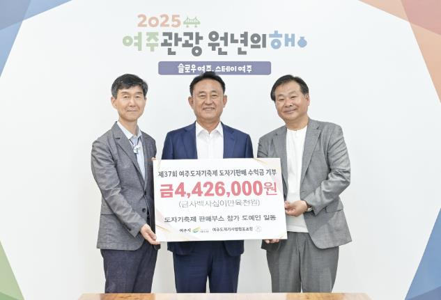 [코리아 이슈저널=홍춘표 기자] 제37회 여주도자기축제가 역대 최대 방문객(1,168,050명)이 방문하면서 성공적으로 마친 가운데, 도자기 판매부스 참여업체와 박광천 대한민국 명장(여주시 도예명장)이 지난 5월 29일 여주시를 방문하여 판매수익금 일부와 행사수익금 전부를 기부했다.