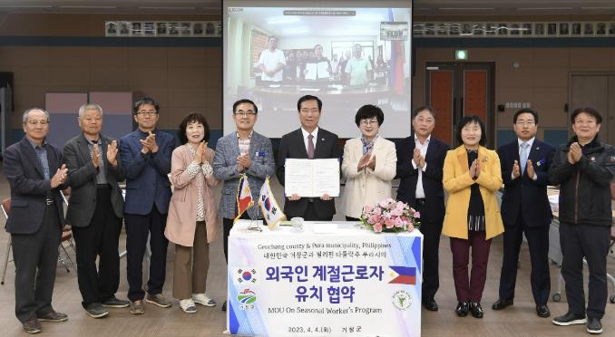 | ▲ 거창군 필리핀 푸라시 외국인 계절근로자 유치 업무협약 체결 |