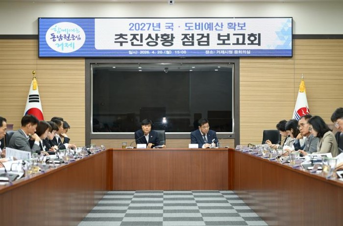 [코리아 이슈저널=김태훈 기자] 거제시는 지난 20일 시청 중회의실에서 ‘2027년도 국·도비 예산 확보 추진상황 점검 보고회’를 개최했다.