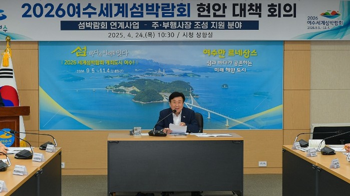 [코리아 이슈저널=김종오 기자] 정기명 여수시장이 섬박람회의 본격적 추진을 위해 지난 24일 2026여수세계섬박람회 조직위원회와 현안 대책 회의를 가졌다.