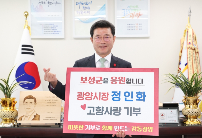 [코리아 이슈저널=김종오 기자] 광양시는 정인화 광양시장이 고향사랑기부제에 3년 연속 동참하며 제도 활성화와 기부문화 확산을 위한 모범을 실천했다고 21일 밝혔다.